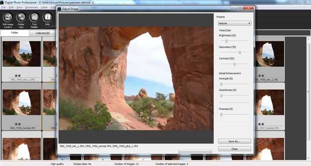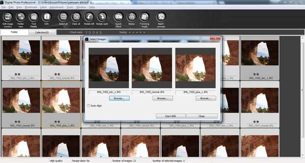 Es posible utilizar el cosido de la imagen como fuente para una imagen HDR (algunos software reduce la resolución). Procesamiento de imágenes RAW todas antes de costura da un mejor resultado. Utilizar los mismos ajustes de HDR para todas las imágenes.