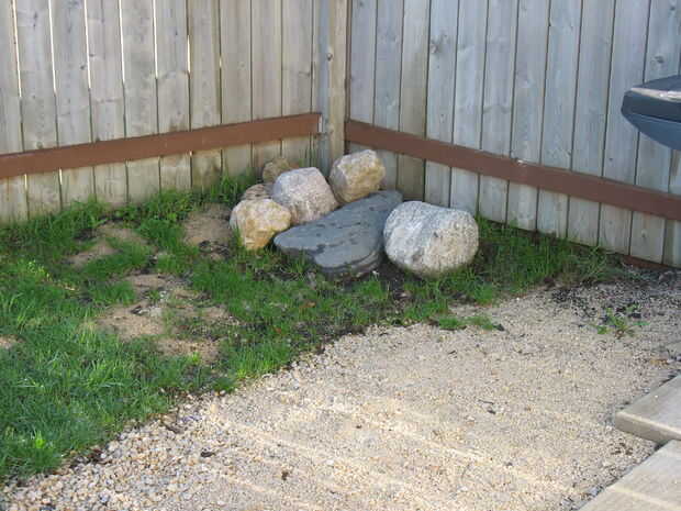 Debemos tener se sentó y miró el montón de piedras (ver foto) para las edades. Lo único que sabía era que como era una zona cerca de la valla en la esquina sureste del jardin de mi casa, nada mucho creció allí.