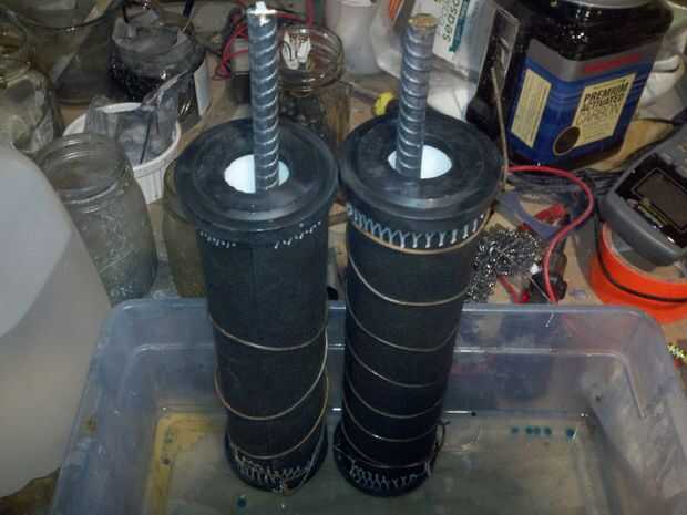 He comprado unas barras de 24 pulgadas en Lowe como mi fuente de combustible. Evite de zinc u otros recubrimientos que pudieran evitar la oxidación. Oxidación es exactamente lo que queremos... Los iones de hierro se emparejó para arriba al ion del oxígeno desde el aire a la roya de la forma y nos dan unos electrones libres. 1 pie de varilla debe dar es algunos cientos vatios de energía.