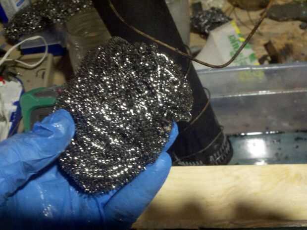 Alba vende un depurador de la olla grande de acero que he utilizado para varios proyectos. Tenga cuidado, puede cortarlo bastante bueno si tire todo... pero con un par de pinzas se puede hacer una "chapa" de lana