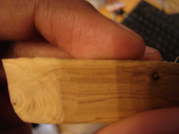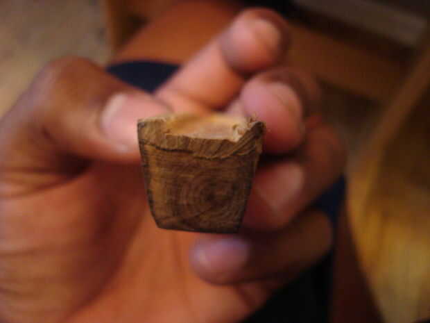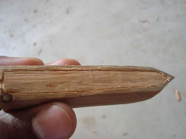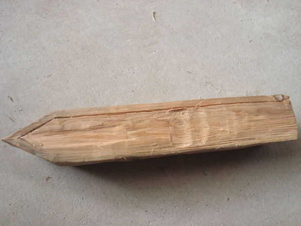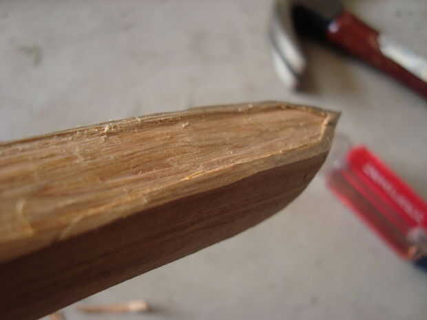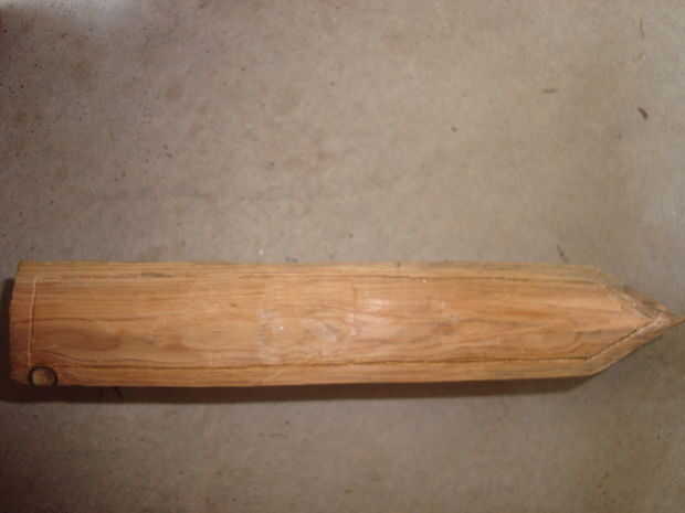 Para tallar el interior de su barco un poco. Empezar por trazar una línea alrededor de 2 a 3 mm de los bordes en la parte superior. Coloque el cincel sobre la línea y suavemente golpee (suavemente) con un martillo o rock (estilo cavernícola! Es también mucho más fácil de usar que un martillo). Luego tallar hacia fuera lo que está dentro de las líneas hacia abajo hasta la profundidad de las líneas (fotos más sentido). Tallar, empujando el cincel con la mano en la parte superior, y no con el martillo. Repetir este proceso varias veces hasta que esté satisfecho con la profundidad, o, como en mi caso, consiguieron naufragado y había agrietado la nave. NO ir muy lejos en la madera con cada contorno, agrietará. Grietas = mal!