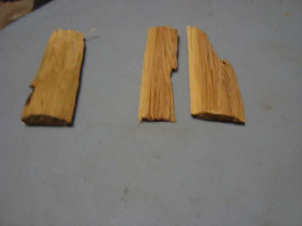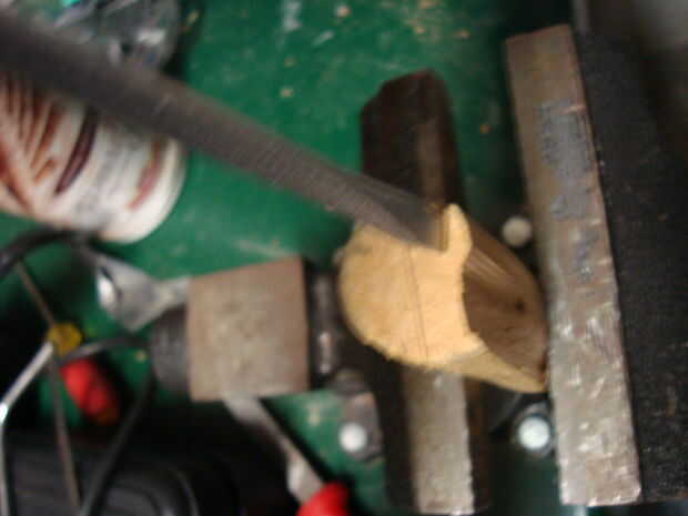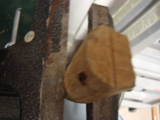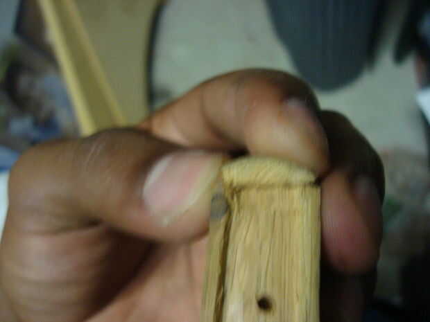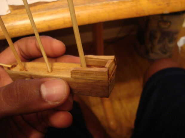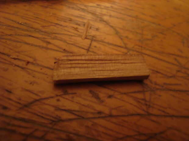 Por lo que en la parte de atrás había desordenado, así que hice esta sección relativamente rectangularish. Entonces decidí añadir un poco más. Utilicé la madera sobrante para hacer "reparaciones". Puse la madera en un tornillo de banco y usando un cincel y un martillo, afeitado de bits sobre el ancho de los costados de los barcos. Puse uno contra la parte trasera del barco, mide lo ancho tenía que ser y dibujó sobre la madera con un lápiz. Entonces labró. Yo también había tallada a dos piezas más como adiciones para los lados hacia la parte posterior del barco. Usé pegamento para encolar.