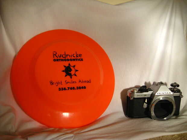 Usando sólo un frisbee naranja y una cámara de apuntar y disparar usted puede crear fácilmente cuadros de estilo pop-art. La mayor parte es que no hay ninguna edición necesaria.