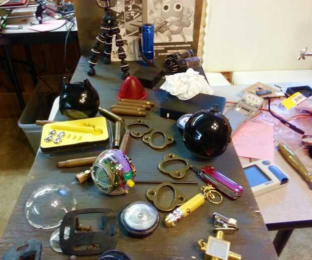 - Los elementos principales que quería usar incluyen 2 viejas luces de antiniebla esféricos, varios vacías conchas de bala de latón, guarniciones de cobre amarillo y los soportes. Pero cuando encontré un fresco transparente interruptor se radio en la pila, cambié uno de los faros antiniebla. Limpiar las conexiones de la batería y tiene que parpadear LEDs y es un AM / FM Radio!