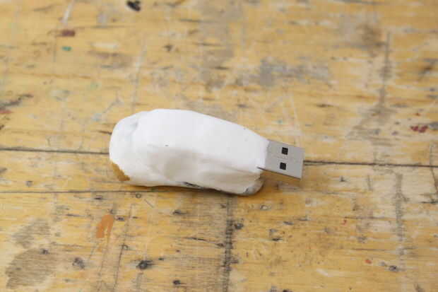 Si esto no es posible luego de la cinta el extremo descubierto del USB a una tabla para que el USB está parado verticalmente y no toque la superficie.