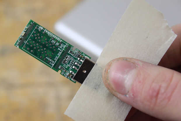Envuélvalo con cinta adhesiva al final hasta este punto. De esta forma, cuando usted construir su sugru que sabe usted que la unidad aún caben en el puerto.