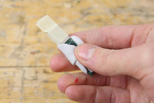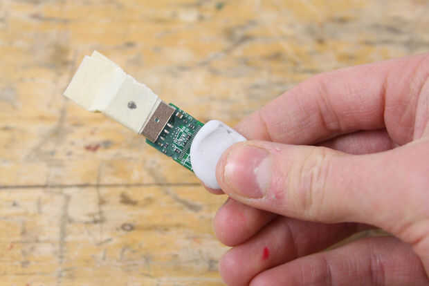Asegúrese de que hay suficiente sugru alrededor de la parte posterior de la placa, a veces pequeñas piezas en el tablero de penetrar el sugru.