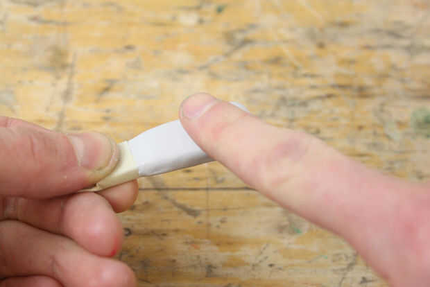 Presione el sugru plana hasta el punto donde termina la cinta de enmascarar.