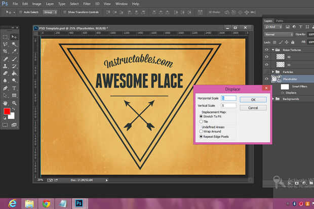 Haga doble clic en "desplazar" cerca capa de marcador de posición. Establecer escalas horizontales y vertical a 5 y haga clic en Aceptar.