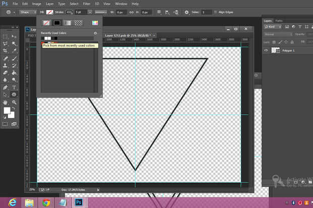 Cambiar el tamaño de triángulo a 2160 x 1280 px. Elegir el color de la línea de muestras y establecer espesor 5 pt.
