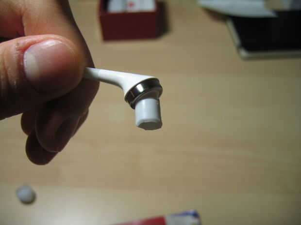 Tan aplicar el pegamento para el auricular de silicona externa y no los auriculares propios. Se aplican realmente el pegamento antes de mirar en el siguiente paso.
