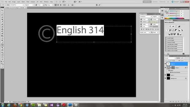 Ahora que ha creado el texto deseado en el cuadro de texto, usted puede mover alrededor de la capa para alinear TI con el logo de copyright ya formado. También puede entrar en la ventana de personaje y ajustar el color, fuente y tamaño del texto para que coincida con el logotipo de autor. Una vez que usted se siente que haya encontrado la posición correcta para su cuadro de texto, puede agrupar el logotipo de derechos de autor con el texto. En lugar de simplemente utilizando la función de grupo de Photoshop vamos a utilizar un método de combinación de capas, que se describirán en el siguiente paso.