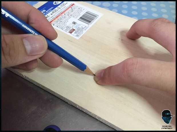 A continuación, llevar la tabla de madera hacia los dedos. Ajustar la tabla si usted siente que no es recto o centrado. Mantenga los dedos sobre la tabla!