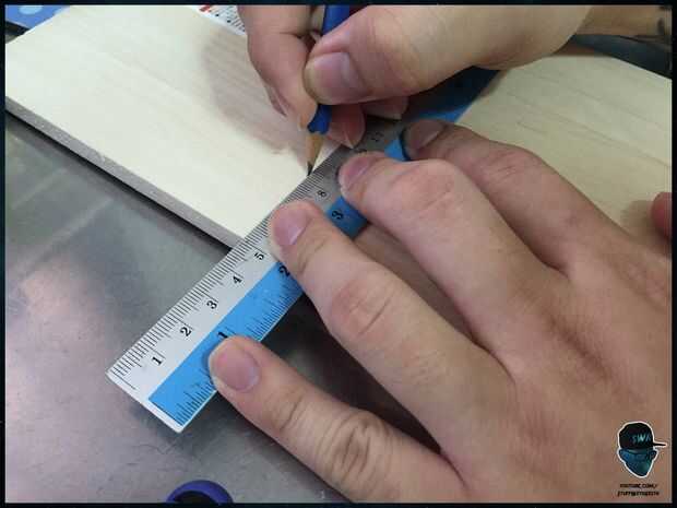 Utilice una regla para asegurarse de que las marcas son recto y paralelo al borde superior de la tabla.