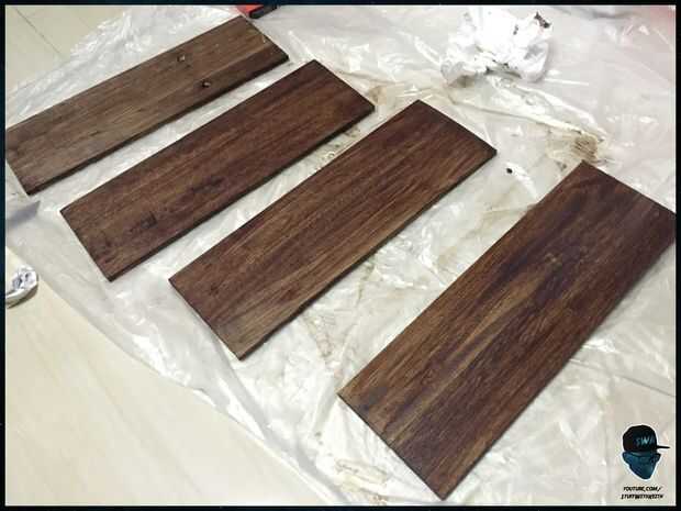 Una vez que tengas las tablas manchadas, darles tiempo para secar. Recuerde que así como los bordes de la mancha! Manchado solo un lado de los tablones como la costumbre de otros lado normalmente ser visto por personas, si estos se utilizan como decoraciones o máscaras.