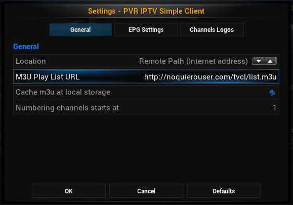 Necesitamos configurar el M3U Play lista URL. Por favor google para buscar un archivo M3U válido en la web. Algunos de los IPs cambian a tiempo.