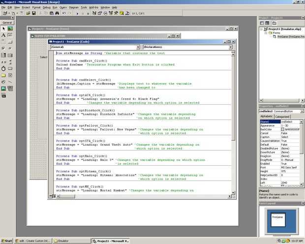 Ahora haga doble clic en el otro comando que se convertirá en una pantalla o botón de selección y entrada este código: