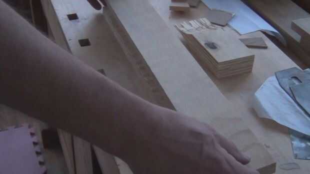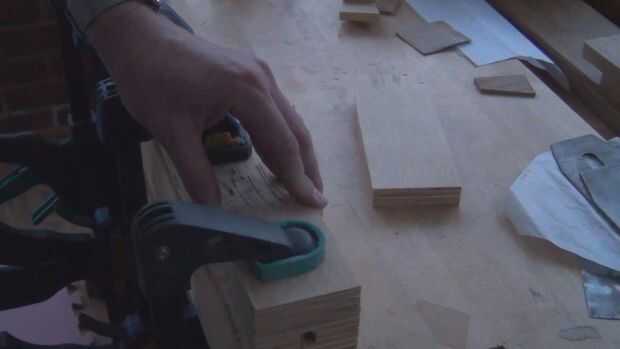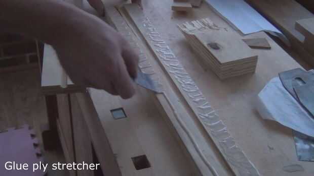 Unir las dos restantes piezas amplia de 100mm de madera contrachapada, asegurándose de que no entre pegamento squeeze hacia fuera en el canal central