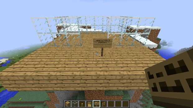 Esto se hace mediante la adición de 3 filas de madera delante de la casa (donde debería estar el acantilado). Cuando la escalera se añadirán deberás hacer un agujero en el balcón. Pero eso es para más adelante.