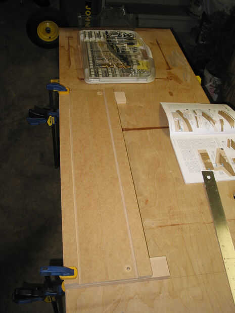 En mi plantilla segundo opté no para pegar las abrazaderas en su lugar como se indica en el plan. Quería cortar unas mortajas de prueba antes de comprometerse con un pegamento final para arriba. Cuando estaba satisfecho con los resultados luego pude desmontar la plantilla, agregue el pegamento y volver a montar. En este momento no estoy seguro si le agrego cola más adelante o no. Me siento confiado que el montaje es lo suficientemente fuerte sin él y como saber que puedo tomar todo el asunto aparte si alguna vez necesito.