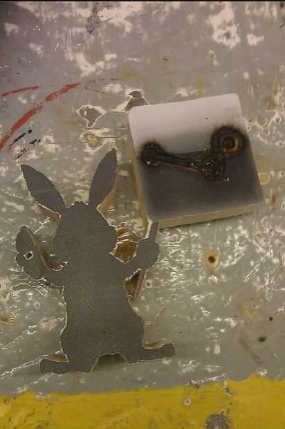 Notó una herramienta de leña en el paso 5? Es esa cosa de poca pluma, felizmente fue calentando durante esa foto, ahora lo uso para conseguir algo del otro blanco piezas que un simple taladro no iban a conseguir (el logo de vapor en este caso) y queman. No te preocupes sobre el papel, a quemar las partes blancas, trate de mantener el patrón tan accesible como sea posible.