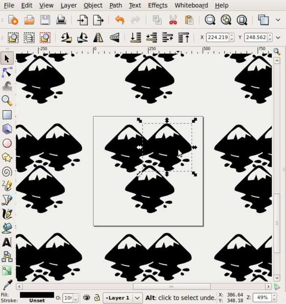 Si ahora mueves los objetos, los clones circundantes también reflejará el cambio. Usando este método, usted puede ahora moverse las imágenes hasta que estés satisfecho con tu patrón general. También puede cambiar el tamaño, girar o borrar las imágenes. Terminé borrando una de las imágenes porque sólo necesitaba 2 para cumplir con el patrón.