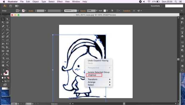 2. A continuación, haga clic derecho sobre el dibujo y "Desagrupar"