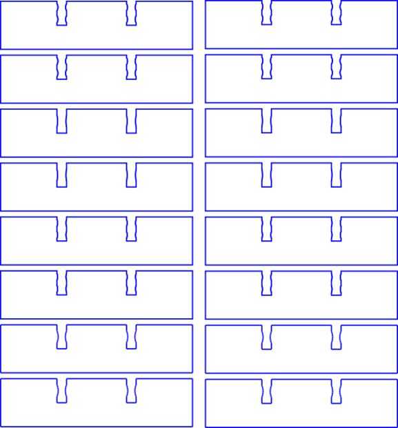 Mis soportes están hechos de álamo italiano madera contrachapada de 4 mm y encontré que un solo nodo de 5 mm de ancho y tener un bulto de 0.16 m m hecho un buen ajuste, que podría trabarse juntos a mano. Sin embargo diversos materiales tendrán tamaños diferentes nodos y que necesita averiguar lo que funciona para usted.