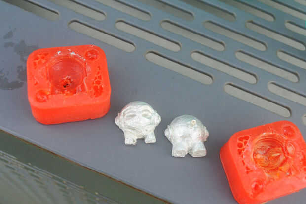 Nota: el molde muestra desgaste un poco en las fotos después de verter el estaño.