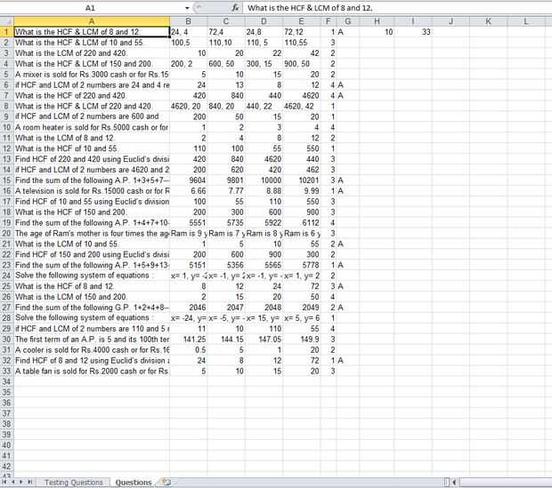 Crear hojas de 2 trabajo llamados "Querstions" y "prueba"