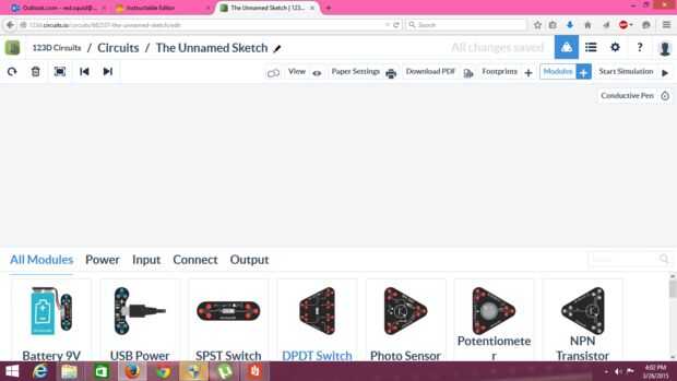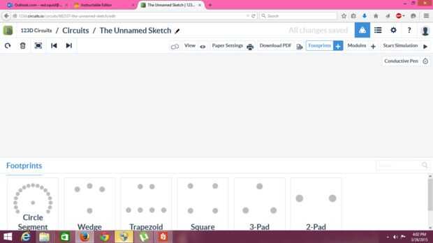 El 123D Circuitscribe fue lo suficientemente hacia adelante, pero no pude averiguar cómo guardar los diseños en múltiples etapas. Me parecía que todavía necesita pulir un poco, pero se está moviendo en la dirección correcta. Consiguió un poco inestable con un montón de huellas y módulos en el área de trabajo. Esto probablemente no es un problema con los diseños de circuitos más pequeños que fue diseñado, pero establecen una red de huellas parece la aplicación de impuestos.