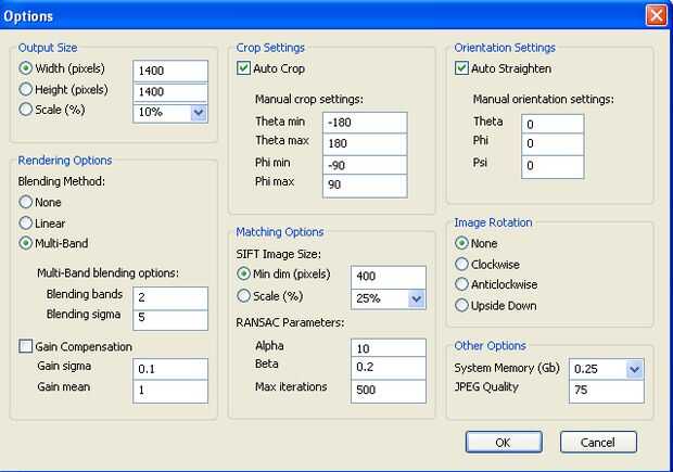 AutoStitch es muy fácil de usar. Básicamente crea un panorama automáticamente, tan pronto como usted abra los archivos de imagen. En primer lugar, sin embargo, te queremos echar un vistazo a las opciones.