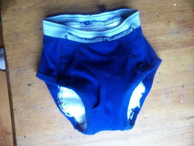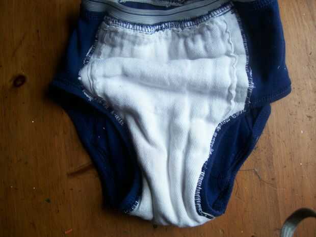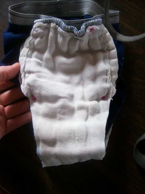 decepcionado con pantalones de entrenamiento de tela producidos comercialmente "100% de algodón que se filtró porque contenían, disección, poliester bateando en lugar de algodón, y buscando una alternativa a los"desechables"pullups, hice pullup cómodo, respirable, lavado y reutilización pantalones de entrenamiento, de los materiales que ya tenían en mano.