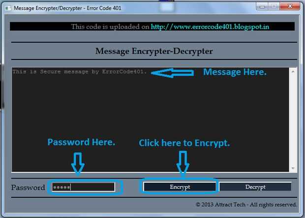 Escriba su mensaje y su contraseña en los cuadros de texto.