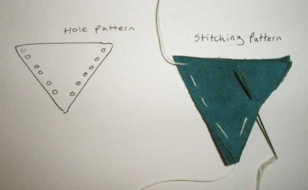 2) Coloque uno encima del otro y utilice su aguja gruesa para perforar orificios alineados a lo largo de los bordes (ver plantilla de patrón puntada). Estos agujeros son para el subproceso.