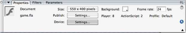 El juego parecía algo malo, no? Movimiento muy agitado. Bueno, aquí está la solución... Con la herramienta Selección, éxito "v" en el teclado, simplemente haga clic una vez en el escenario (la parte blanca de la pantalla ¿recuerdan?) Entonces, en el panel Propiedades, mira la foto, encontrar la "velocidad de fotogramas:" entonces una pequeña caja que cuenta con "12" en él, entonces fps junto a él, en la segunda foto. (Mina dice 24 porque tomé la foto, después lo cambiaron) Haga clic en el cuadro y cambiar eso "12" a "24". Ahora probar el juego nuevo (CTRL o comando - entrar) y debe ser mucho más suave.