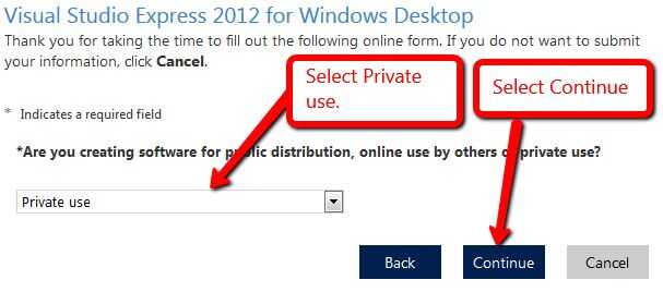 Cuando aparezca la pantalla siguiente, seleccione la opción que dice uso privado. Entonces después de que se ha seleccionado, haga clic en continuar en la esquina inferior derecha.