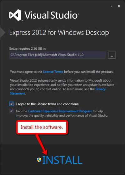 Después de aceptar los términos y condiciones, se ilumina la pestaña inferior de "Instalar". Antes de hacer clic en esta ficha, tenga en cuenta que después de hacer clic una ventana de User Account Control aparece. Cuando aparezca esta ventana, asegúrese de haga clic en la ficha de sí Ahora haga clic en la pestaña "Install", que se iniciará el proceso de instalación.