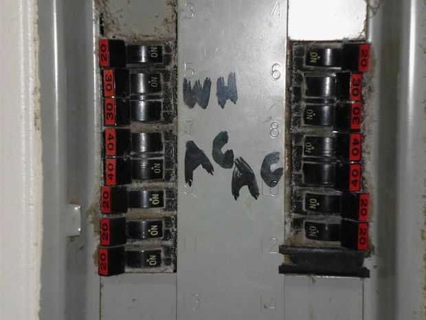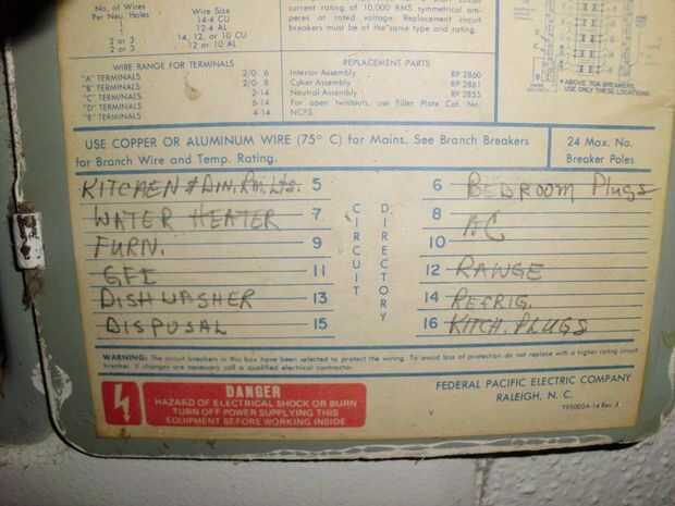 4. usted tendrá que elegir 2 salidas de la casa que son alimentados por 2 interruptores diferentes que se tocan en la caja. Ejemplo (la nevera 14 y los enchufes de cocina 16) se tocan según etiquetado. Claramente el etiquetado está mal en mi apartamento, pero debe tener la Idea. 2 disyuntores tocar uno al otro, o justo debajo de él le dará 240 voltios.