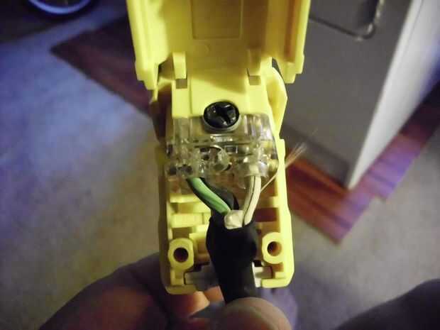 2. tomar el preparado cable negro y el alambre verde y tuerza los dos cables de cobre y pasarlas por el lado de la clavija que tiene el tornillo de oro.