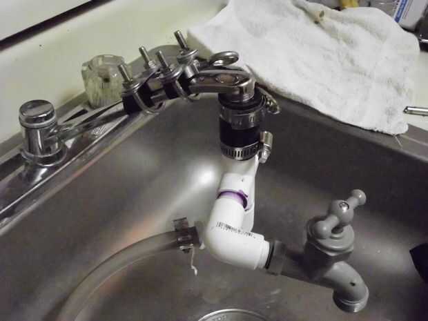 3. Conecte el extremo cortado de la manguera de agua fría a la configuración de grifo de cocina.