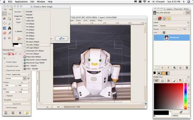 Si más amplio que el taller de imagen, escriba 8.5 en campo de la anchura.
