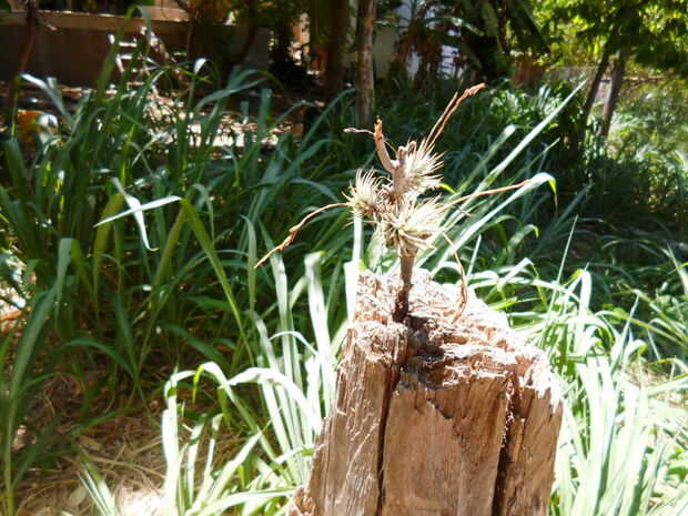 Honestamente no sé qué he utilizado, pero puede utilizar cualquier especie en sus hojas pequeños latigazos, bromelias epífitas y contener este trabajo las características muy bien debido a que absorben la humedad del aire, por lo que no, que se pudo quitar la tinta de agua.