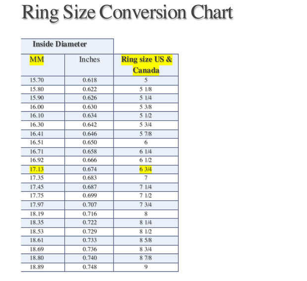 3) el siguiente es determinar el diámetro del tamaño del anillo. Uso de tablas de conversión en línea (foto de referencia arriba), usted encontrará la conversión de tamaño de anillo en el diámetro interno en milímetros. Luego crearemos un cilindro 3d en el programa de modelado para esa dimensión. Creando un modelo de los dedos y su diámetro para construir alrededor.