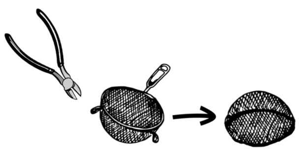 Tomar sus cortadores de alambre y cortar la malla de alambre de la coladera.