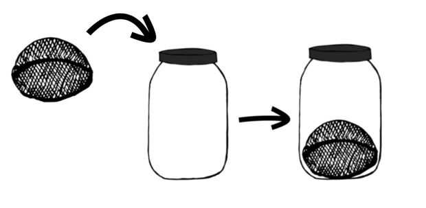 Luego tomar la malla de corte y colocar en el fondo del tarro. (Asegúrese de que su tarro/envase reciclado se limpia hacia fuera). Desea que la malla de alambre para encajar perfectamente por lo que puede conservar su forma de cúpula.