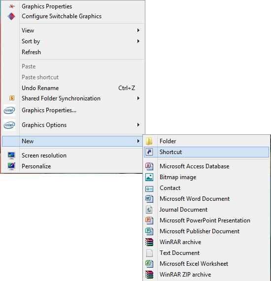 Haga clic derecho sobre escritorio, haga clic en nuevo y haga clic en acceso directo