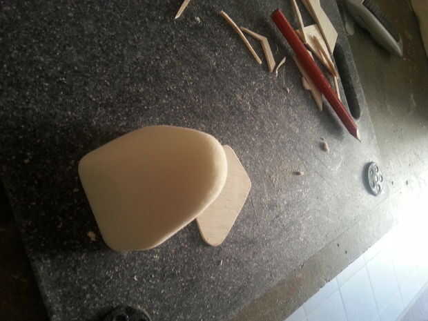 3. Afeitarse a la nariz para el plano de como se ve en la imagen. La nariz es de 8cm de largo y tiene que encajar en el tablón.