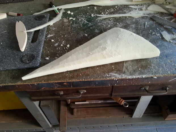 Tienes que tener una sola pieza recta de madera de balsa y curvo de una pieza de espuma.