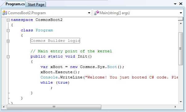 Nota: Todo el código para el sistema operativo irá debajo de la línea de xBoot.Execute() de código.